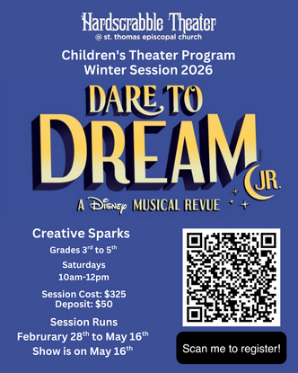 Hardscrabble Theater’s Children’s Theater Program proudly presents its Winter Session 2026 production: Creative Sparks featuring Dare to Dream JR. — A Disney Musical Revue! Designed for students in grades 3–5, this energetic program invites young performers to explore the magic of musical theater through some of Disney’s most inspiring stories.